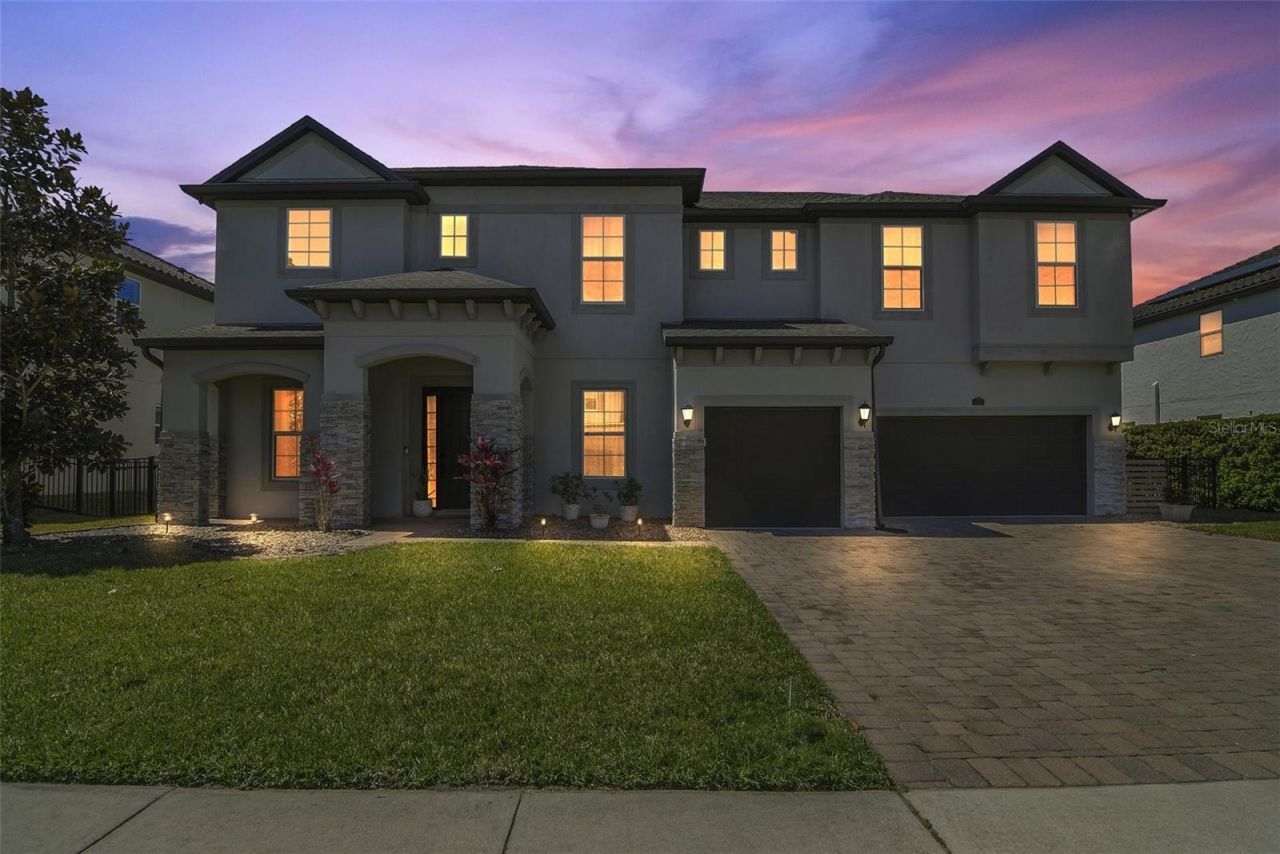 Located inside the gated community of Oviedo Gardens on a quarter-acre lot, this home offers rare park and pond views with no rear neighbors. The open-concept layout features soaring 2-story ceilings and tons of natural light, creating a bright, spacious feel the moment you walk in. A standout feature is the dual primary suites, both designed as private retreats with large windows, spa-style bathrooms, soaking tubs, walk-in showers, and custom cabinetry. Perfect for an in-law suite. The gourmet kitchen includes stainless steel appliances, granite countertops, and custom cabinets, opening directly to the main living and dining areas - perfect for entertaining. Upstairs you'll also find a private theater room, ideal for movie nights or game days. Step outside to a screened-in pool and landscaped backyard overlooking the park and pond - a rare combination of privacy and view. Located near top-rated schools including Hagerty High School, with quick access to shopping, dining, and major roads. 2024 UPDATES the following upgrades were completed! 17.3 SEER AC units on every level, fresh interior paint, crown molding throughout, and a redesigned office with custom 8-ft French doors.Homes with these upgrades, views, and dual primary suites in Oviedo Gardens don't last