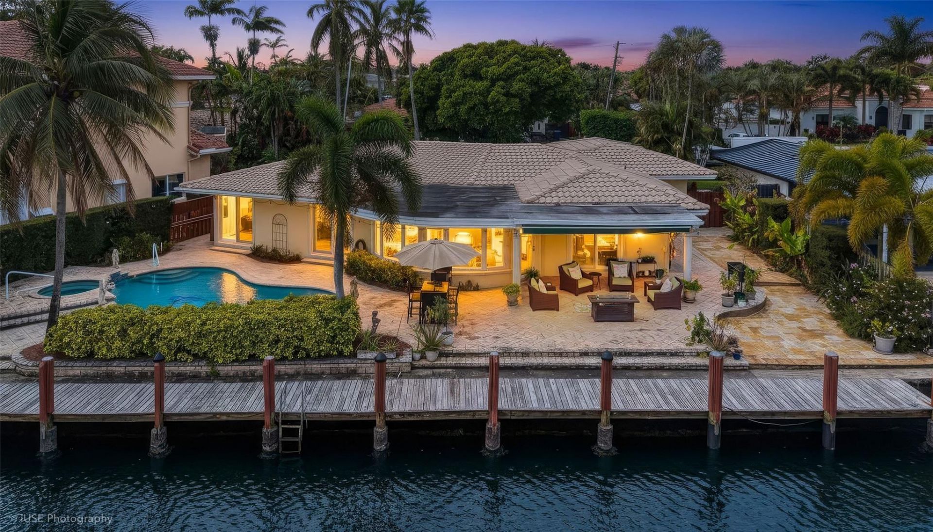 Rare waterfront opportunity on a quiet Wilton Manors cul-de-sac! This 3 bed/2.5 bath property offers 2,172 sq ft with 100' of ocean-access frontage and expansive Middle River views. Light-filled living room with decorative fireplace, spacious family room overlooking heated saltwater pool, and dining with water views. Updated kitchen with KitchenAid appliances, remodeled baths, custom closets, whole-house filtration, impact windows/doors, 2-car garage, paver drive. Clay tile roof 2005 (sealed 2024), 2020 AC, 2019 water heater. 100' dock resealed 2024, Aqualink system, landscape lighting, electronic awning, hurricane-rated garage door, ADT security, new garage flooring, two-zone sprinkler system, leaf-filtered gutters. There are a wealth of upgrades in this beautiful home. Come and see it!
